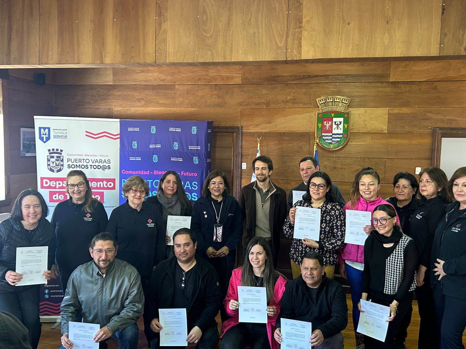 Porque el bienestar nos importa, en Puerto Varas seguimos avanzando en turismo responsable. El 23 de septiembre, se realizó la entrega oficial de certificados de primeros auxilios a guías de turismo y personal municipal que participaron en un curso intensivo por la cruz roja chilena y el Departamento de Turismo. La formación se llevó a cabo entre el 10 al 13 de septiembre, reunió 22 horas de clases teóricas y prácticas en las que se abordaron maniobras de reanimación, atención de lesiones y protocolos para actuar rápidamente ante emergencias.